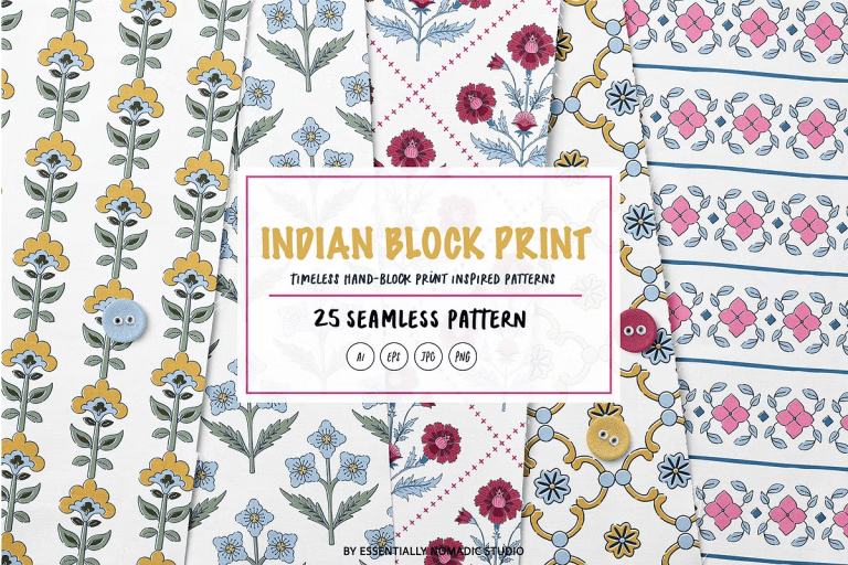 Immerse Yourself in the Soul of Indian Textile Heritage Uncover the rich legacy of Indian hand-block printing with this meticulously curated collection of 25 seamless patterns, each one a living testament to centuries-old artisan techniques. These designs are more than…