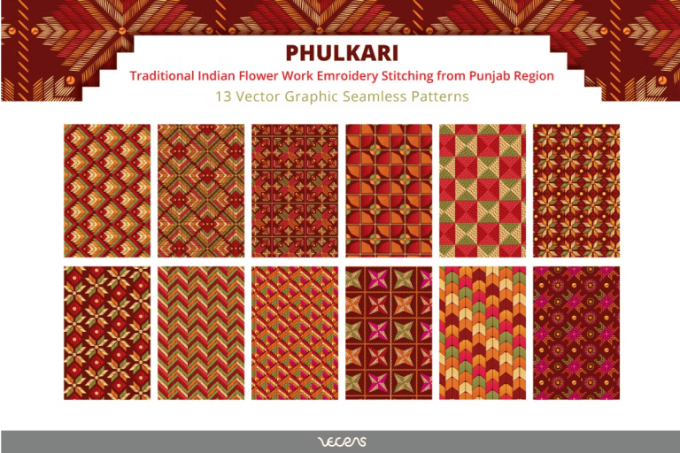 Rediscover the Heritage of Punjab with Timeless Embroidery Artistry Unlock the soul of Punjabi tradition with **Phulkari Seamless Tileable and Scalable Vector Patterns** a meticulously crafted collection of 13 culturally rich patterns rooted in the centuries-old art of Phulkari, a…