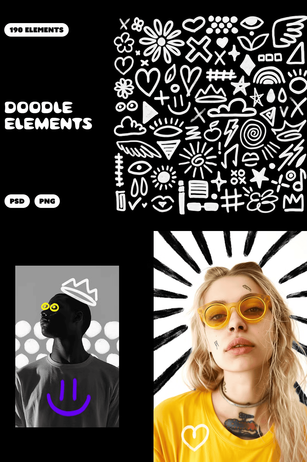The variety of shapes, lines, and scribbles ensures you’ll never run out of ideas. Mix and match, layer, scale, and color them to match your unique aesthetic the design freedom is limitless.