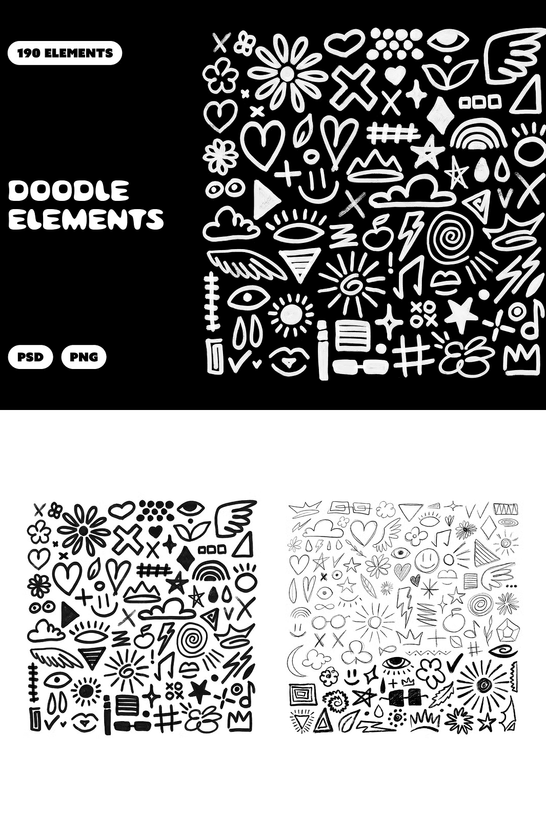 Stop searching. Stop waiting. The perfect doodle assets are here hand-drawn, expressive, and instantly usable. With **190 unique marker doodles and scribbles**, this collection delivers visual energy and personality for any project. From playful presentation highlights to intricate comic panels, from engaging book layouts to sticker-style design accents these assets bring life, texture, and authenticity to your work.