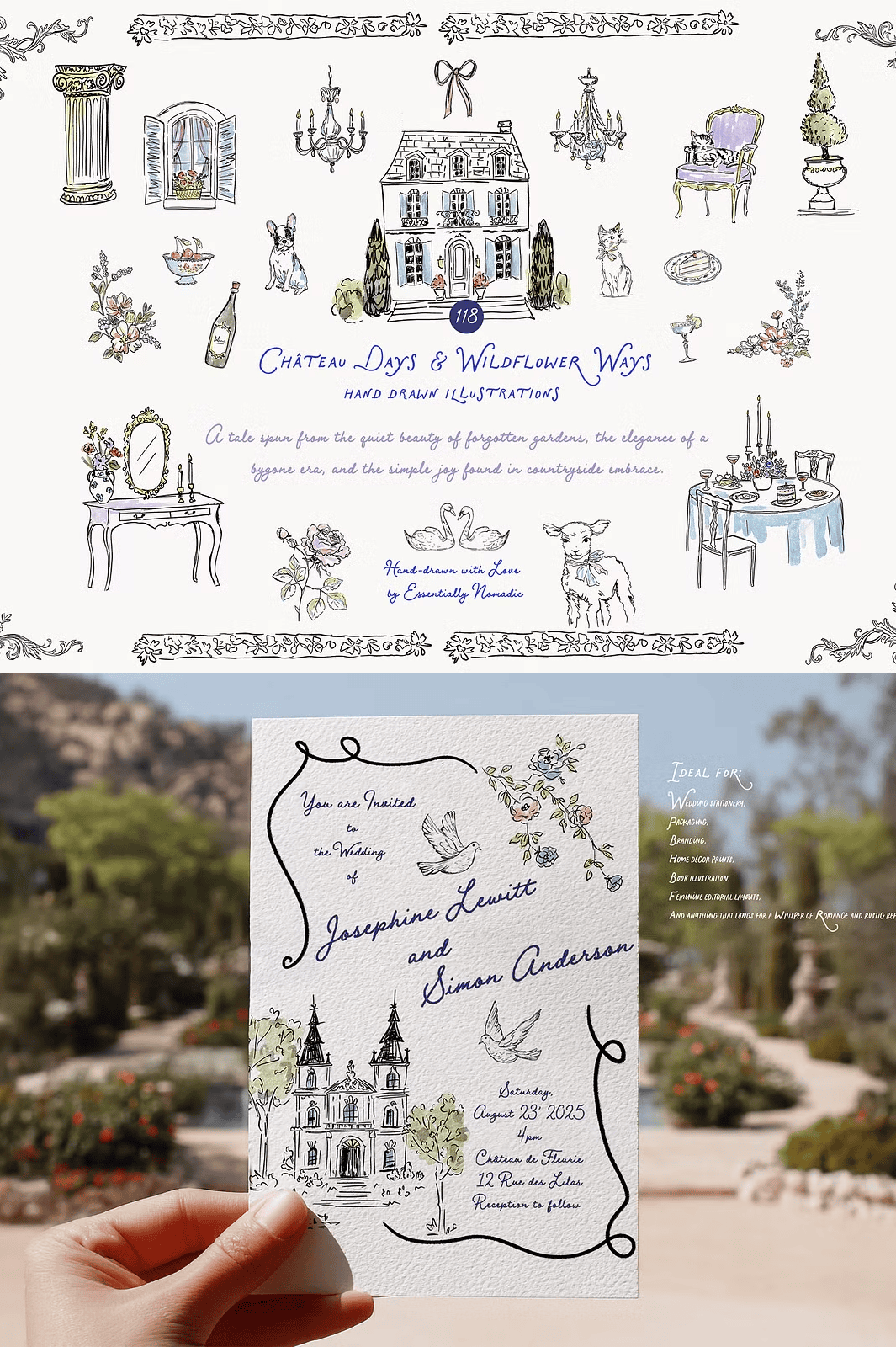 – **Wedding & Event Stationery**: Craft invitations, save-the-dates, and thank-you cards that feel hand-delivered from a château garden.