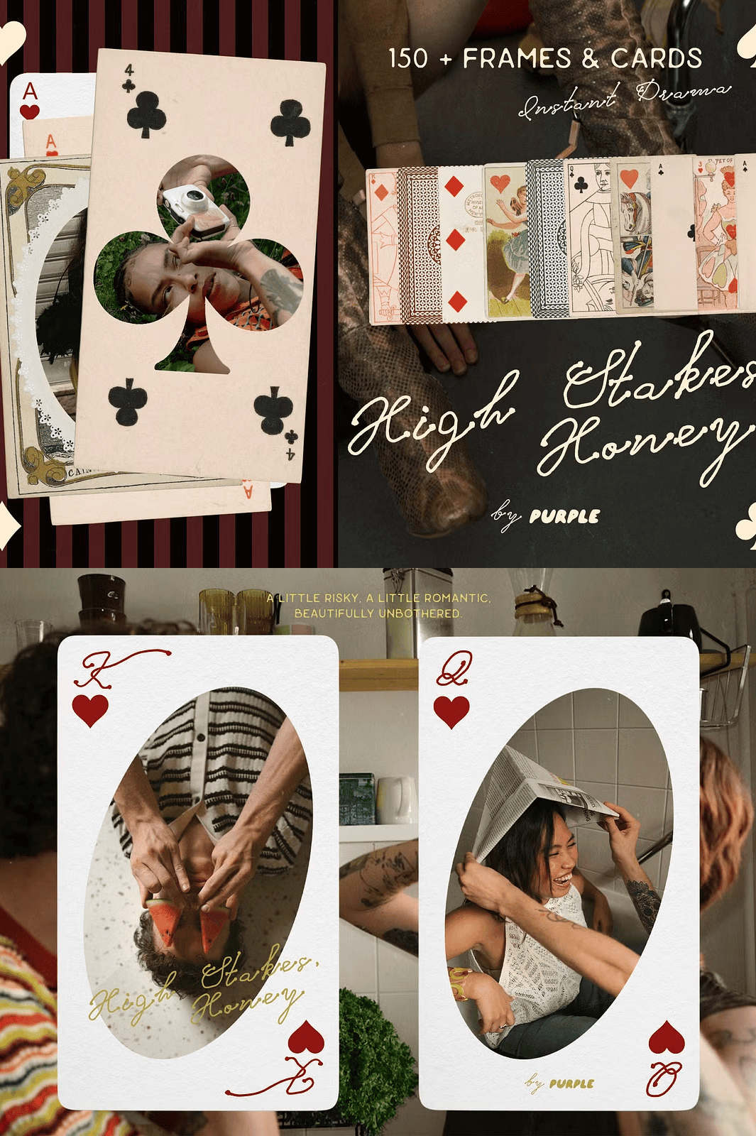 – **Instagram Stories & Reels** – Frame your photos with romantic cut-outs or use card bases for clean, modern visuals with instant polish
