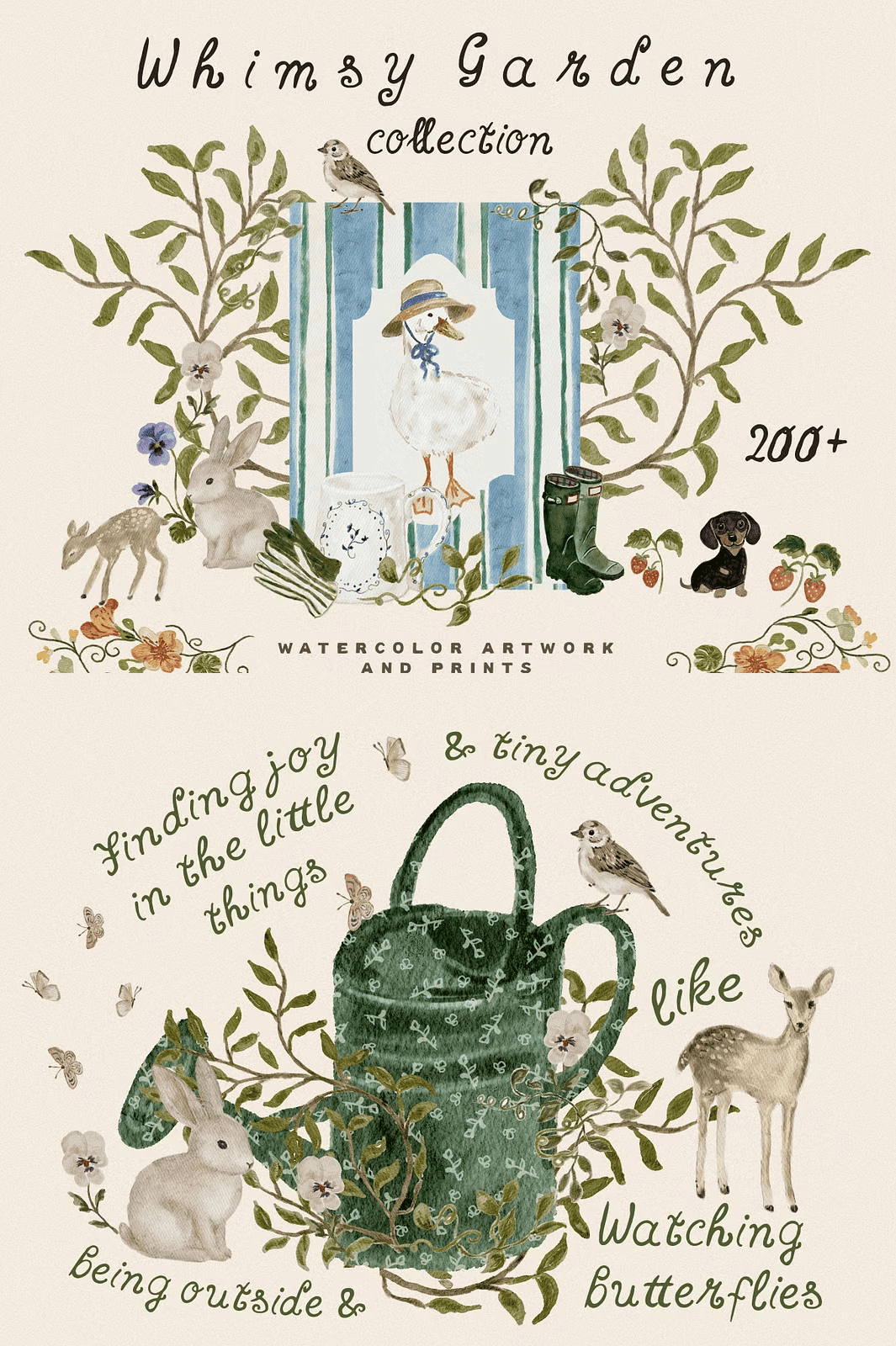 – **100+ Hand-Drawn Watercolor Elements (PNG, ~2000px, 300dpi)** – From delicate daisies and fluttering butterflies to rustic birdhouses, vintage watering cans, and crooked garden paths. Each element is drawn with intention, offering natural variation and subtle imperfections that scream authenticity.
