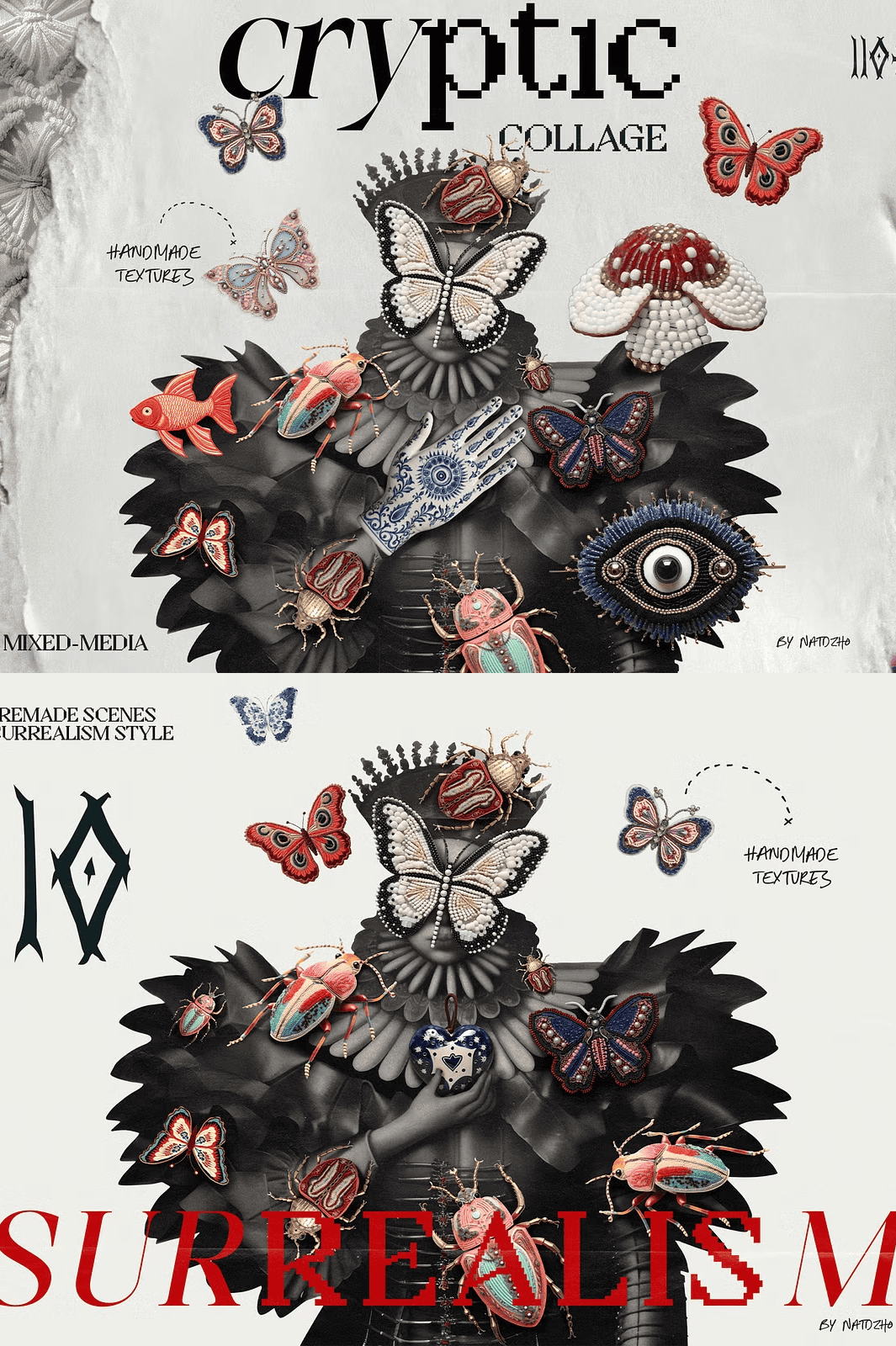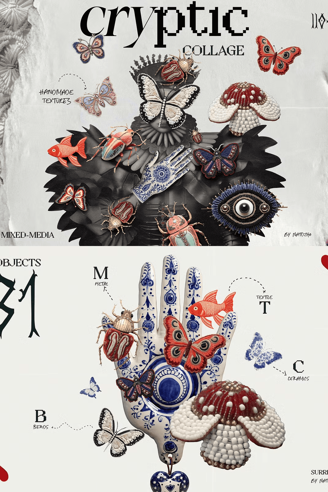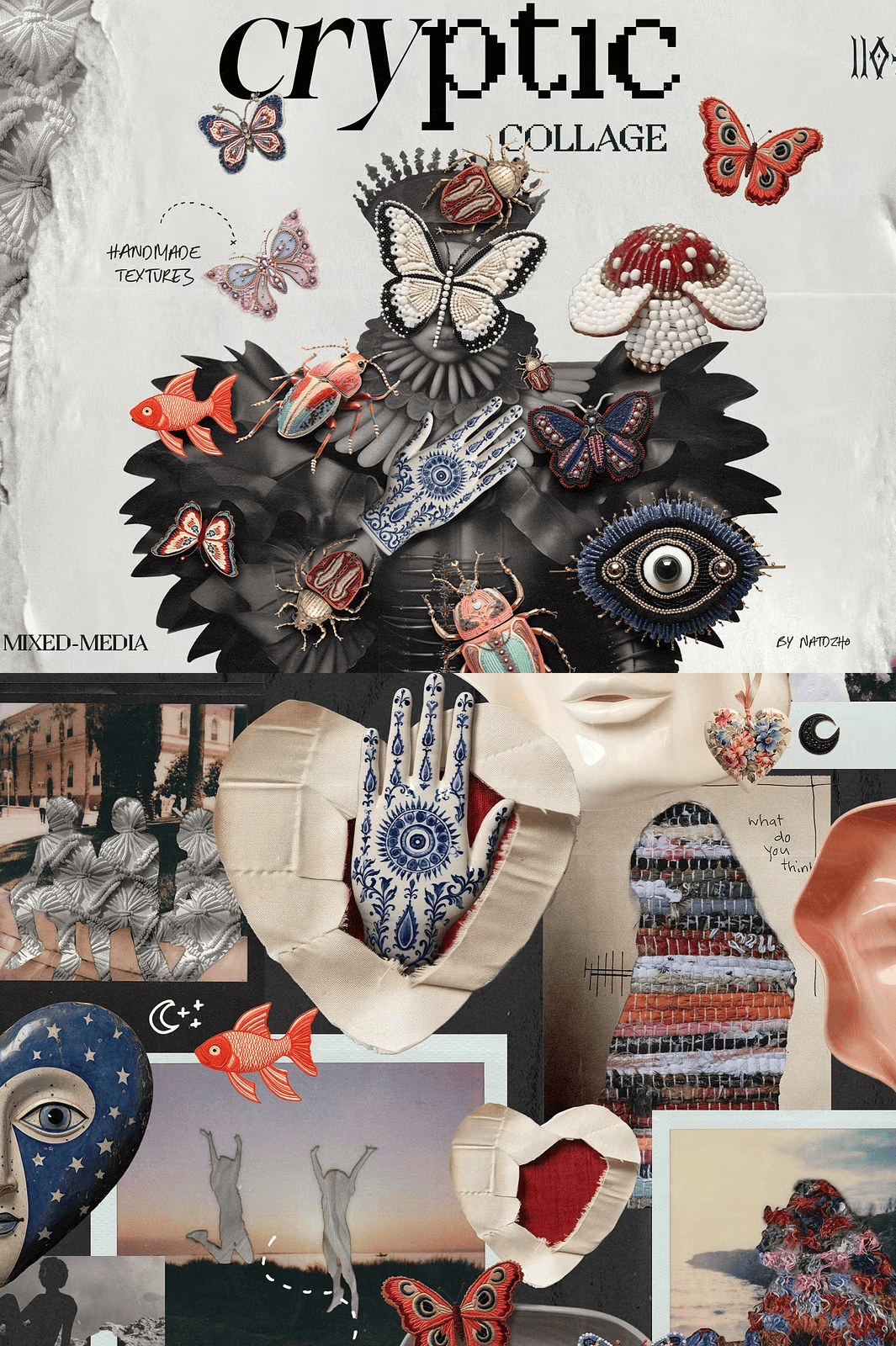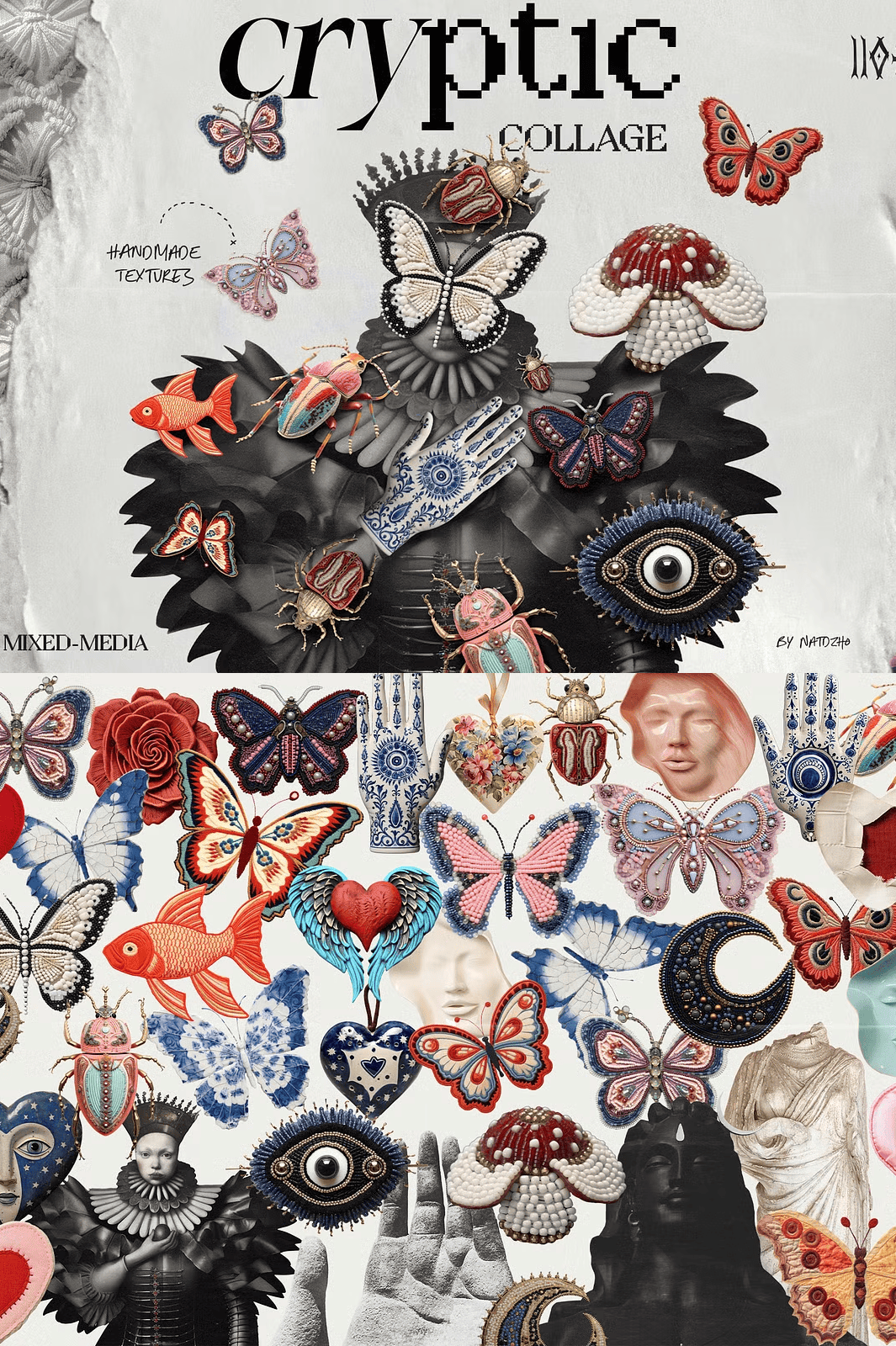 Step into a world where logic fades and imagination reigns. **Cryptic: Mixed Media Collage** isn’t just a collection of digital assets — it’s a portal into surrealism, a curated arsenal for artists who dare to dive into the subconscious. This eclectic, boundary-smashing kit delivers over 100 hand-crafted elements that blend texture, mystery, and emotional depth, forged from real-world materials like textile, ceramic, metal, beads, and aged paper. Every piece carries the ghost of an artisan’s hand, the whisper of a forgotten ritual, the echo of unspoken stories.