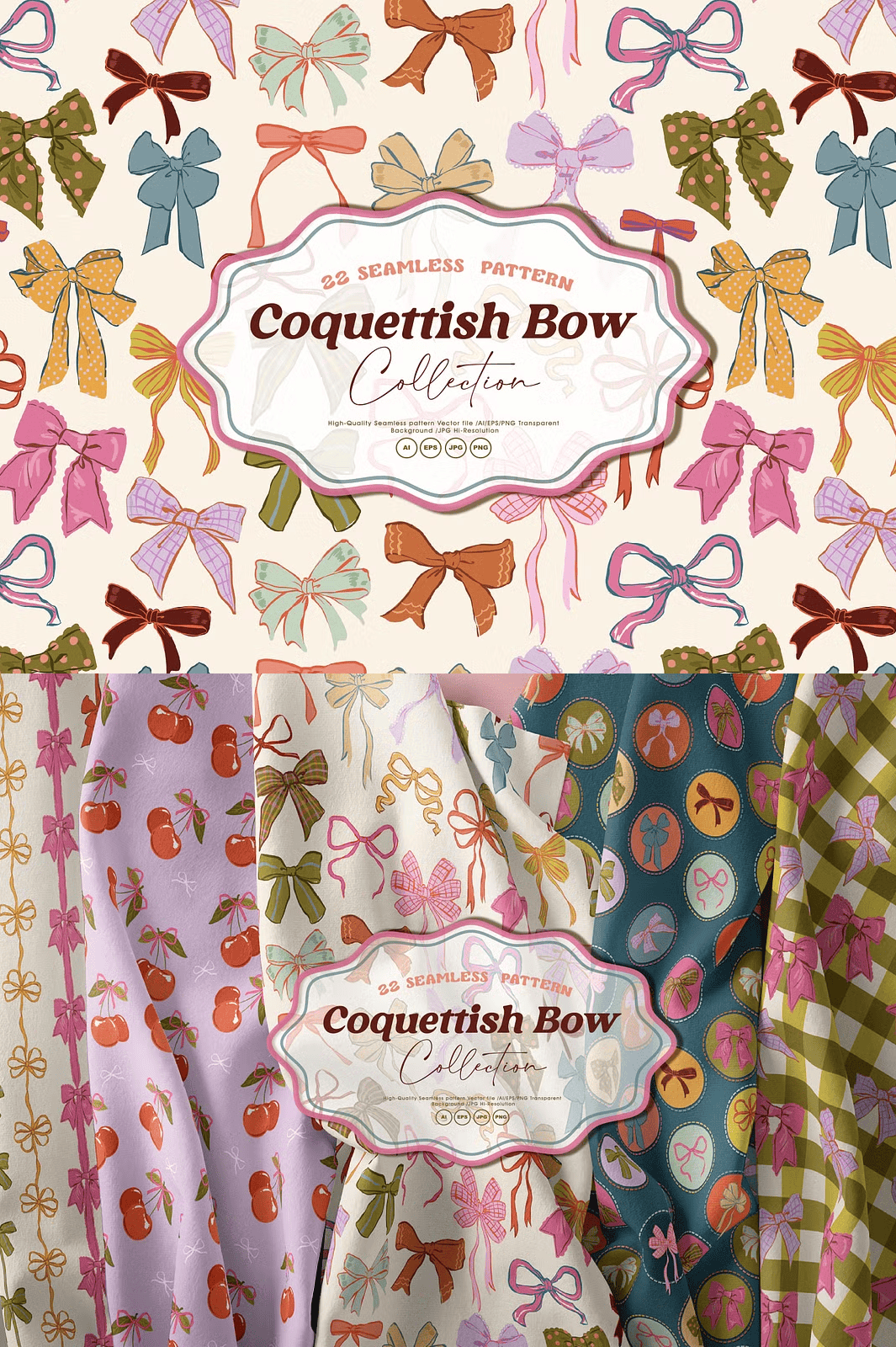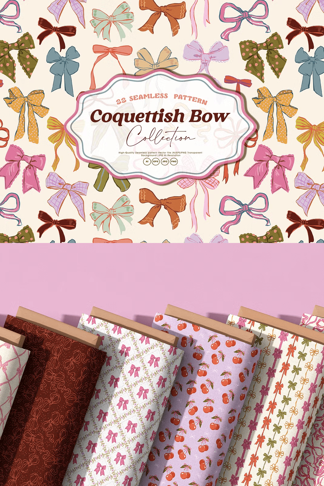 Don’t wait to bring your designs to life. Click below to download the full Coquettish Bows collection and experience the power of professional-grade, feminine pattern assets—ready to use from the first click.