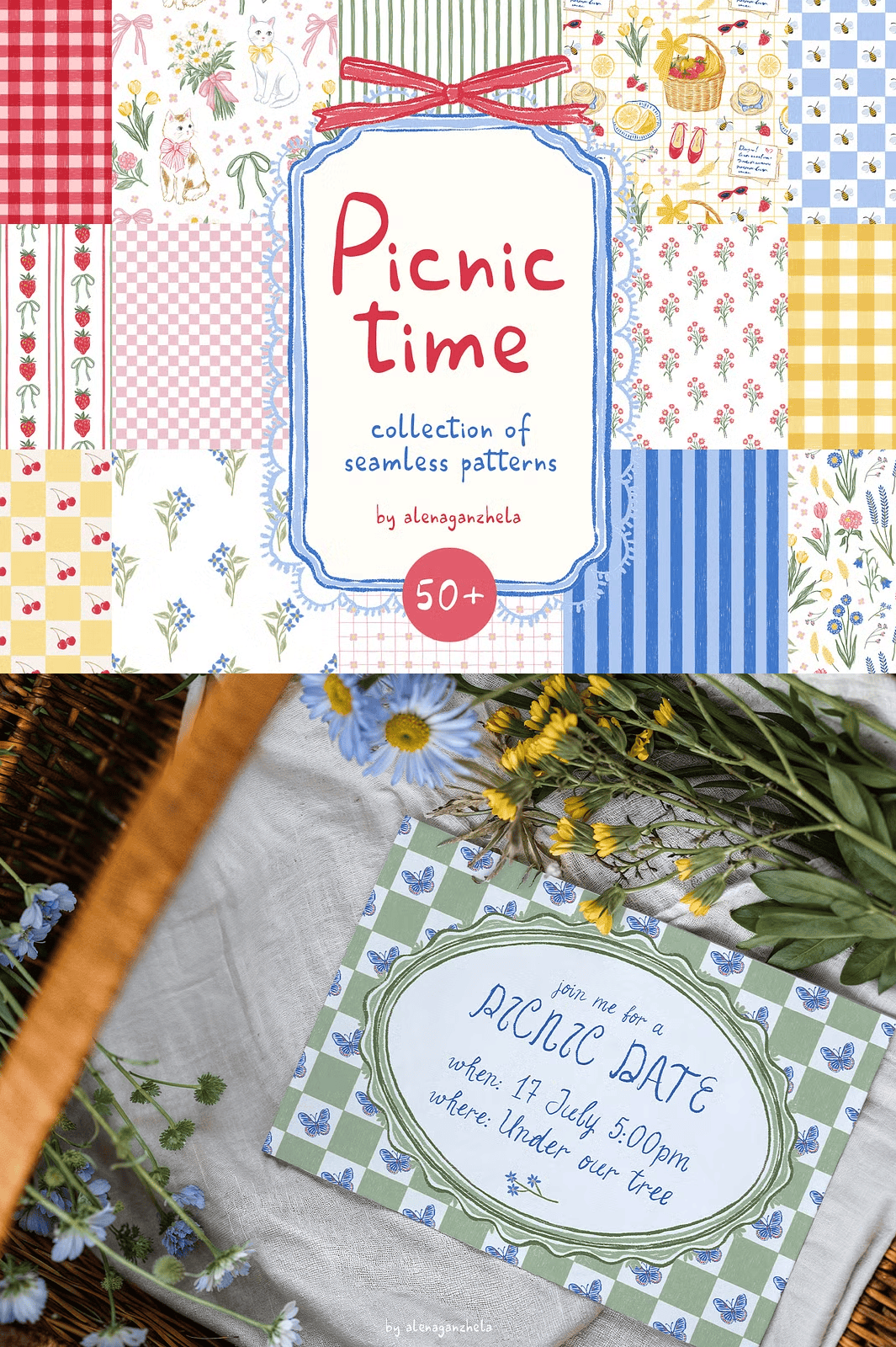 Let your designs tell a story. These patterns don’t just fill space—they evoke memory, emotion, and feeling. A wildflower on a tablecloth, a gingham bow on a gift wrap, a tiny pet peeking through flowers—each detail adds depth and authenticity. Your audience doesn’t just see the design; they feel the joy.