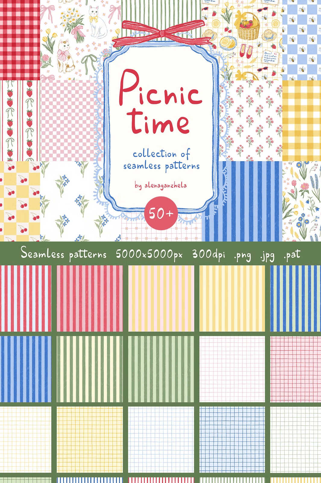 These aren’t just patterns—they’re invitations to a joyful, sun-drenched season. From delicate wildflowers and juicy berries to playful gingham checks, ribbon bows, and adorable pet companions, this collection captures the heart and soul of a perfect summer picnic. Whether you’re designing fabric, packaging, or digital art, these visuals instantly elevate your work with warmth, personality, and childlike wonder.