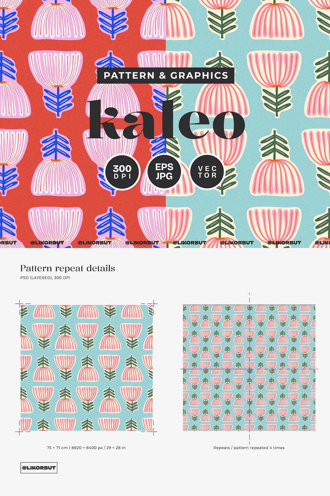 - Perfect Repeat Dimensions: Pattern repeat size is 75 × 71 cm (8820 × 8400 px / 29 × 28 in), ideal for large-format prints, textiles, digital backdrops, and high-resolution packaging.