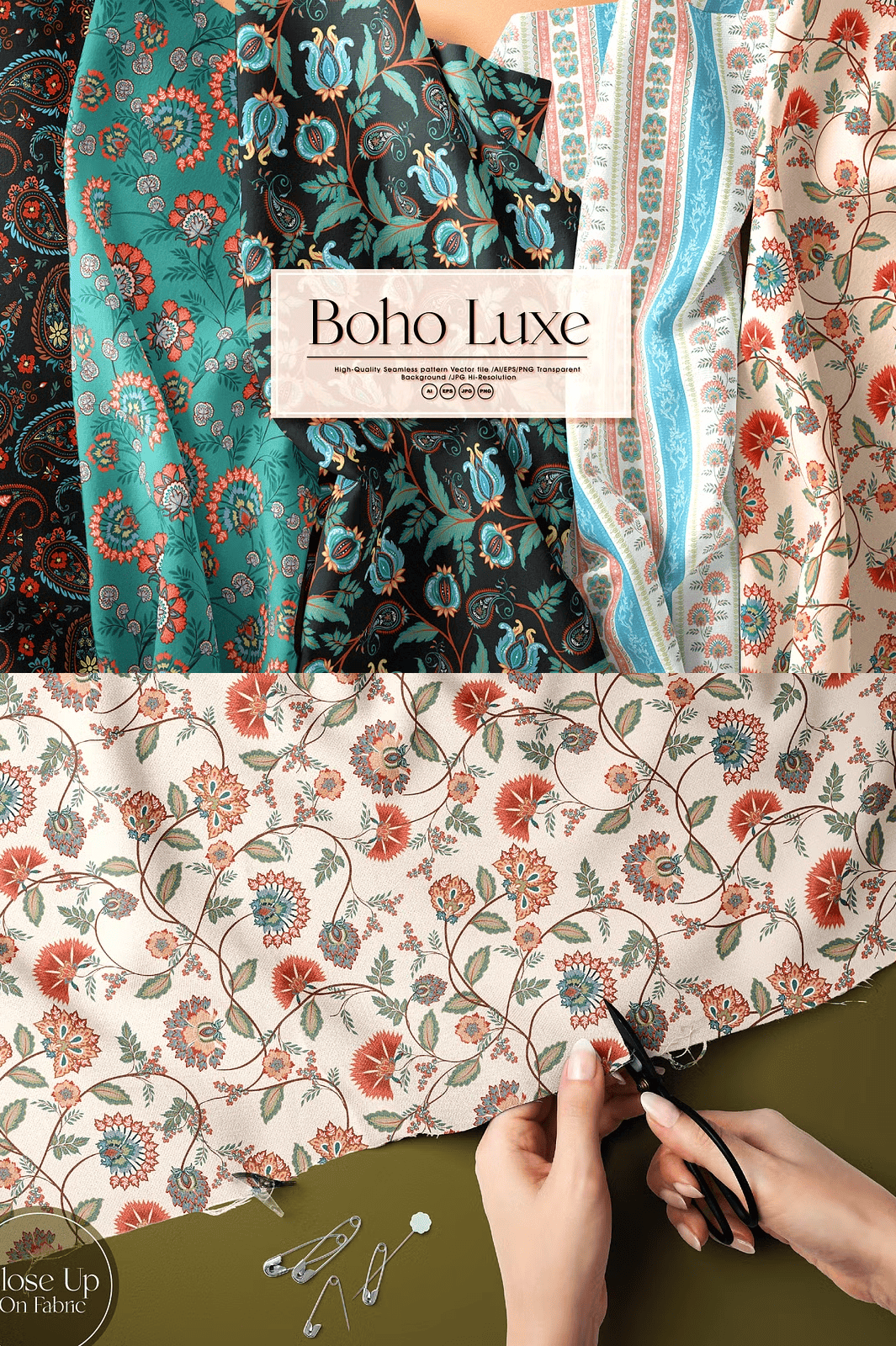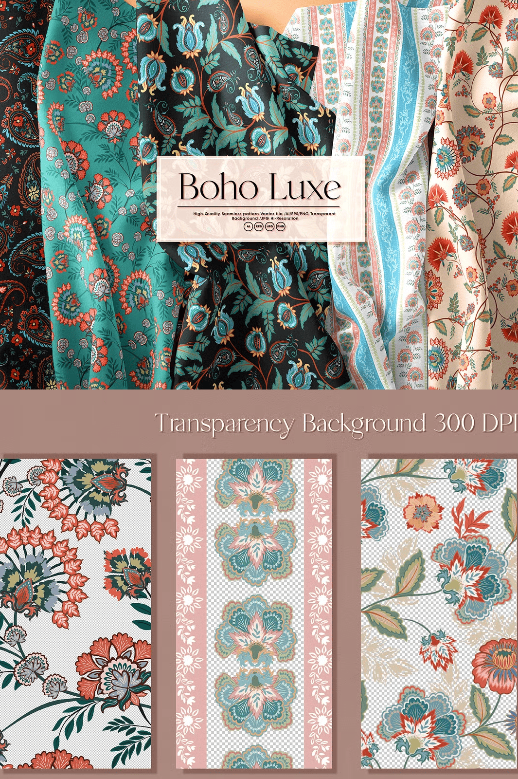 Whether you are designing textiles, apparel, branding materials, packaging, or digital graphics, Boho Luxe seamlessly adapts to elevate your aesthetic with its versatile motifs and luxurious feel.