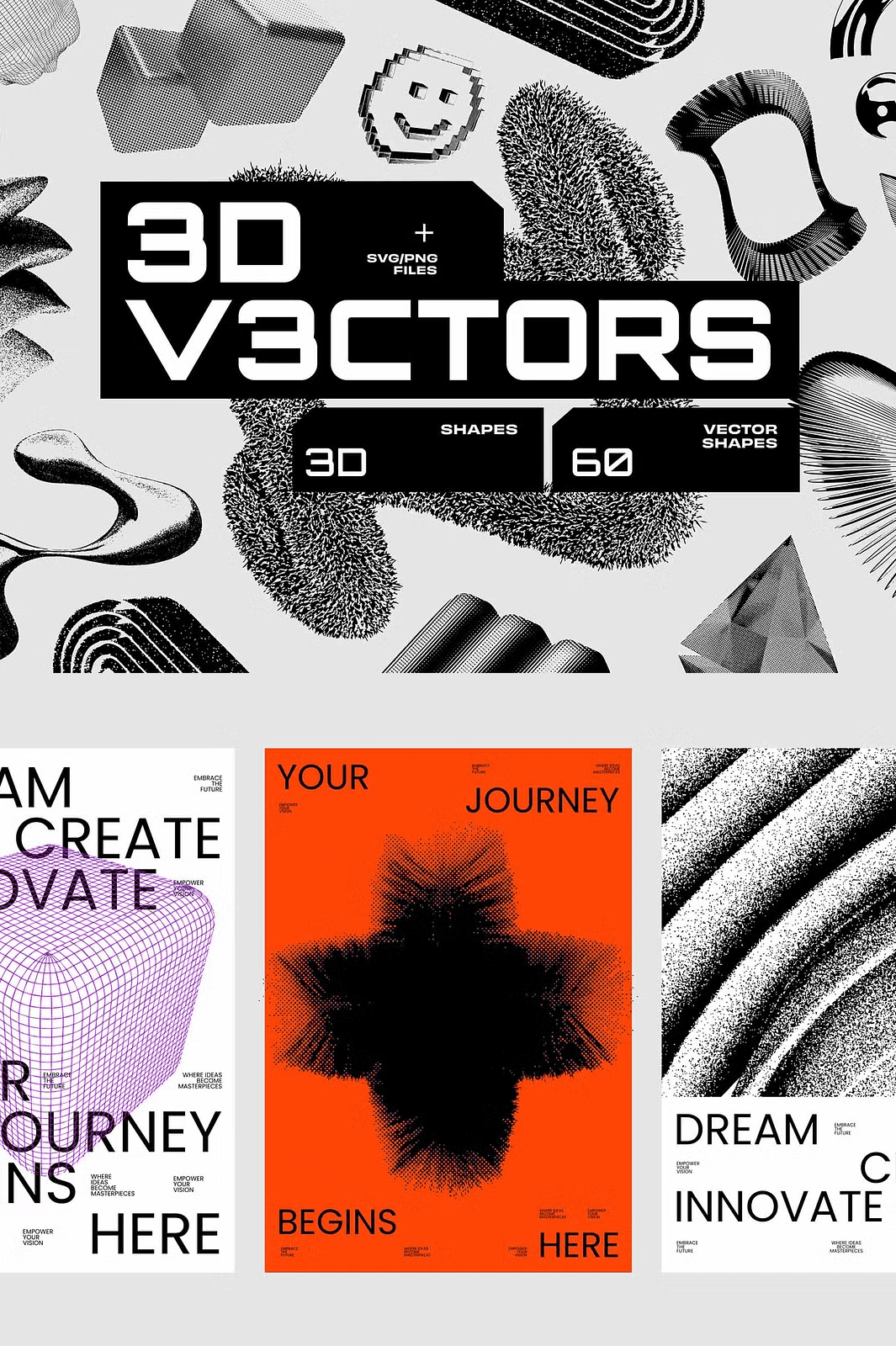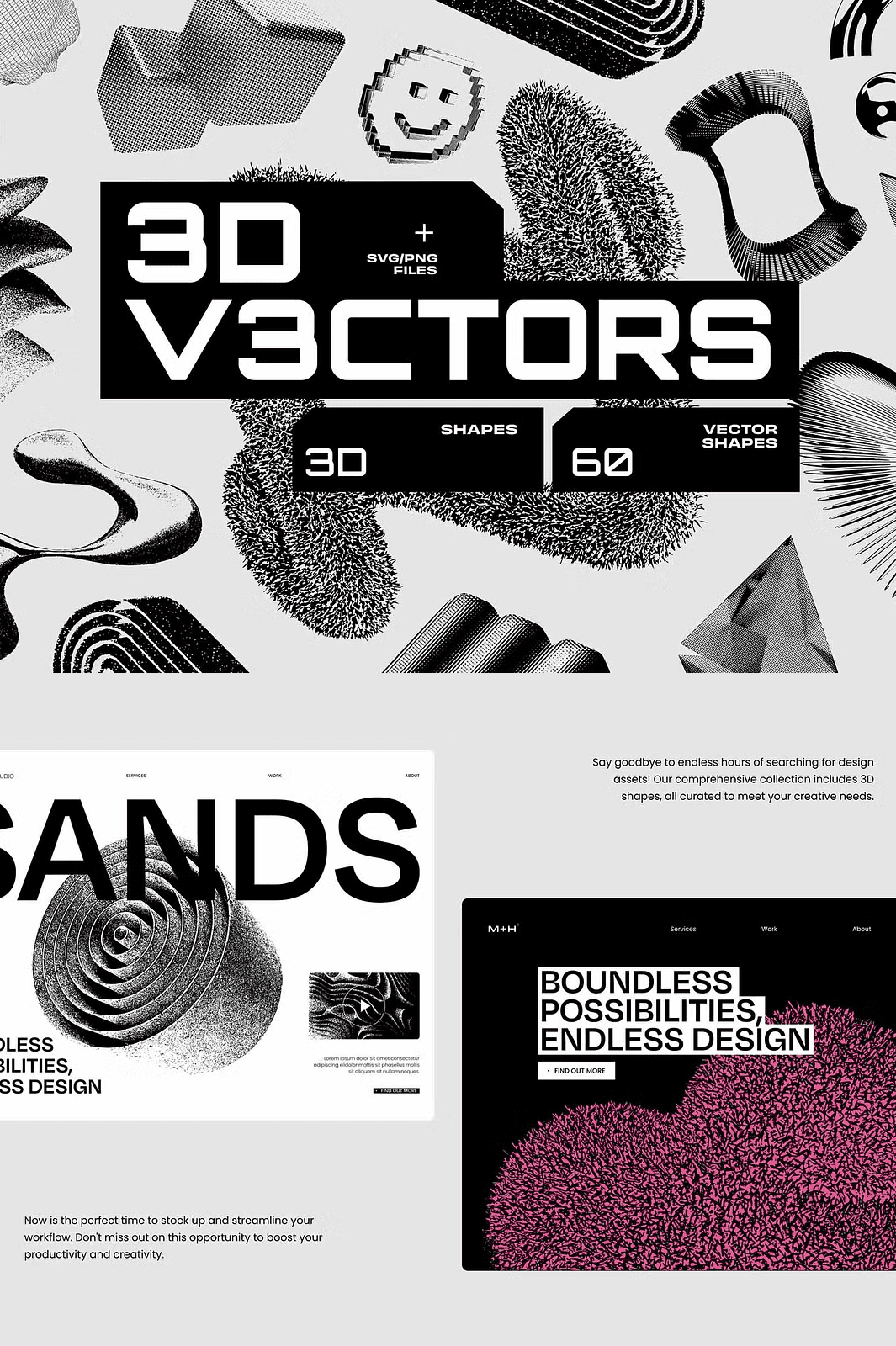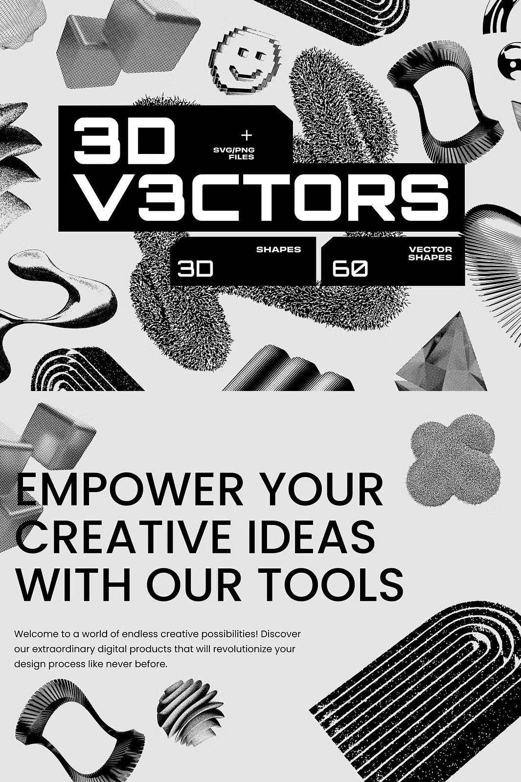 - 60 Equally Detailed 3D Vector Shapes in Black: High-contrast silhouettes perfect for dark-themed designs, contrast-driven layouts, or editorial spreads.