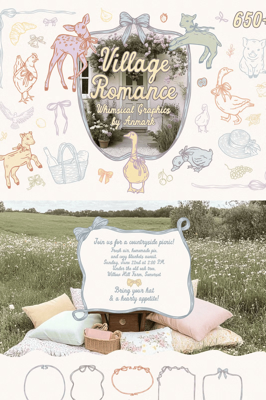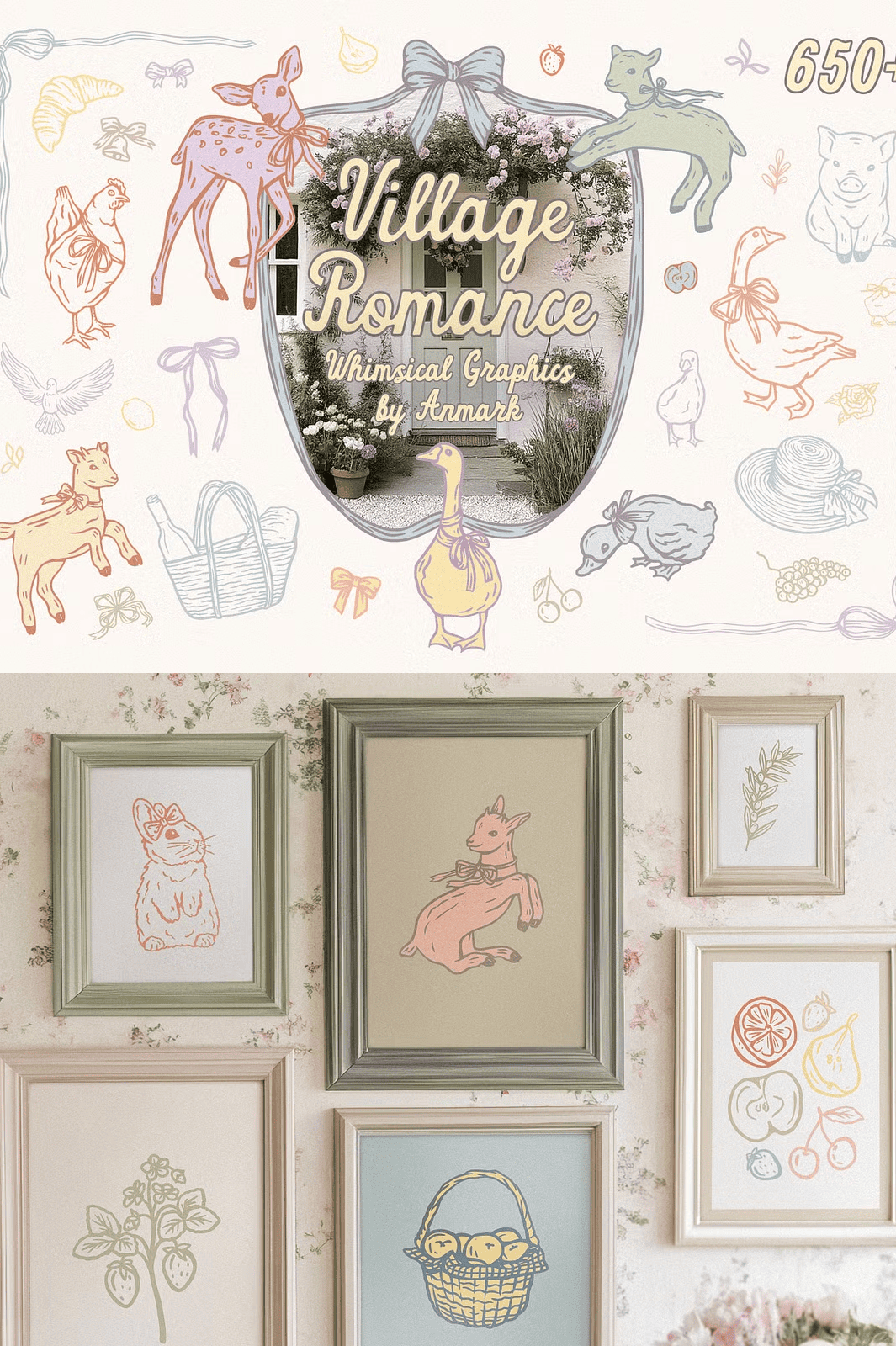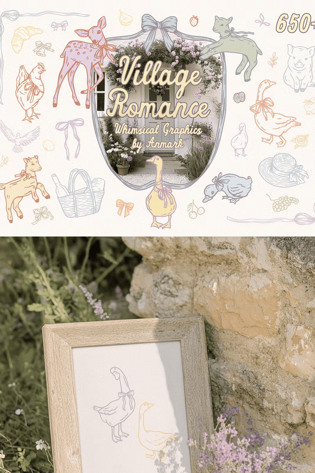 Uncover the quiet magic of village life and romantic countryside weddings with Village Romance Whimsical Graphics a meticulously hand-drawn collection of 651 illustrations crafted to inspire warmth, nostalgia, and visual storytelling. Each element pulses with gentle character: delicate bows tied by unseen hands, fluttering birds in pastoral skies, dainty farm animals grazing at golden hour, and wildflowers growing between cobbled paths. This isn’t just a graphic pack it’s an invitation to design with soul, warmth, and a quiet sense of wonder.