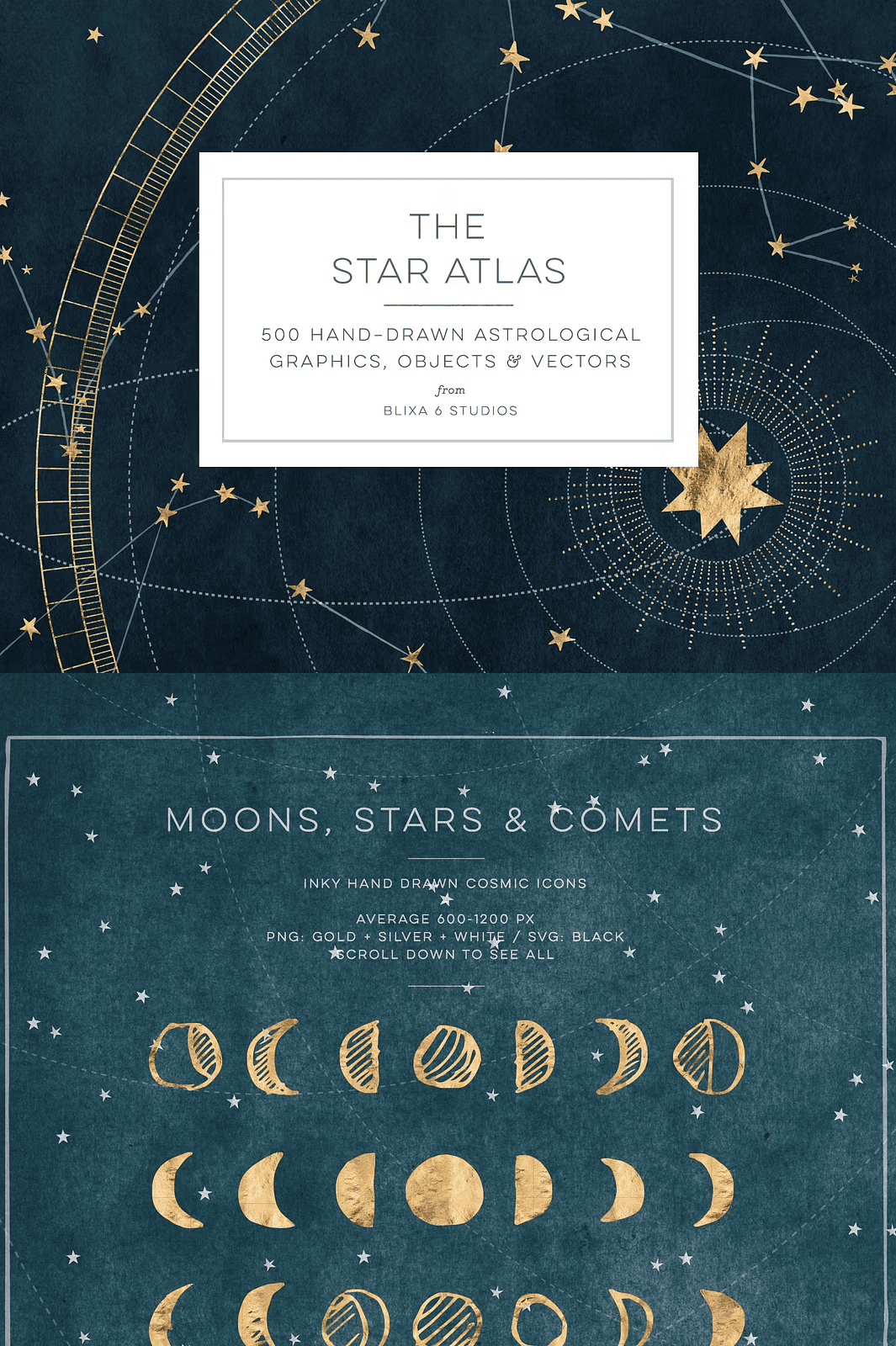 Use the constellations to guide storytelling. Layer the moon phases to express emotion. Place a comet across a logo — and watch meaning ignite.